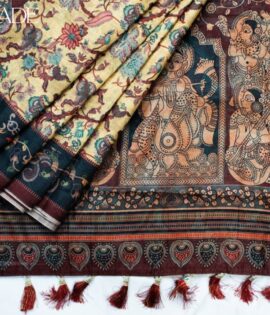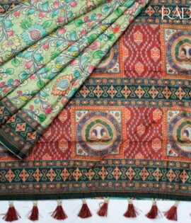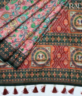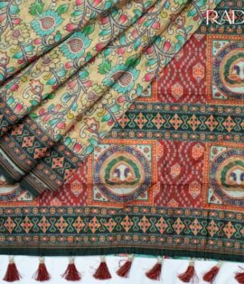 Turquoise Blue Saree with Pink hand-block printed blouse